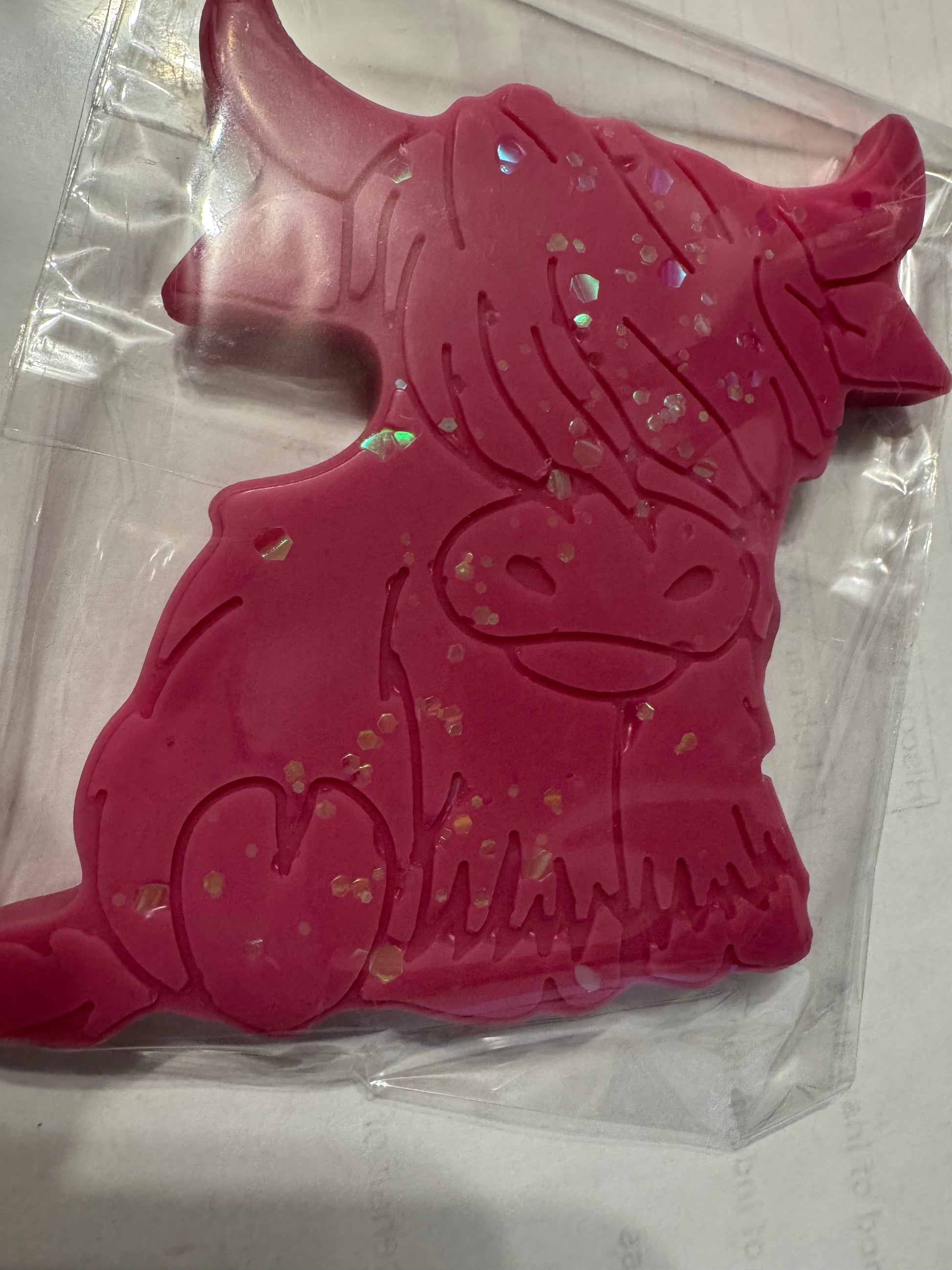 Discover the Cozy and unique experience of our Highland Cow wax melts. Made with high-quality soy wax, these melts offer a natural and clean burn, while our variety of scents provide a delightful aroma to any room. Each melt is handcrafted with care and the charming cow design adds a touch of whimsy to your home Decor.